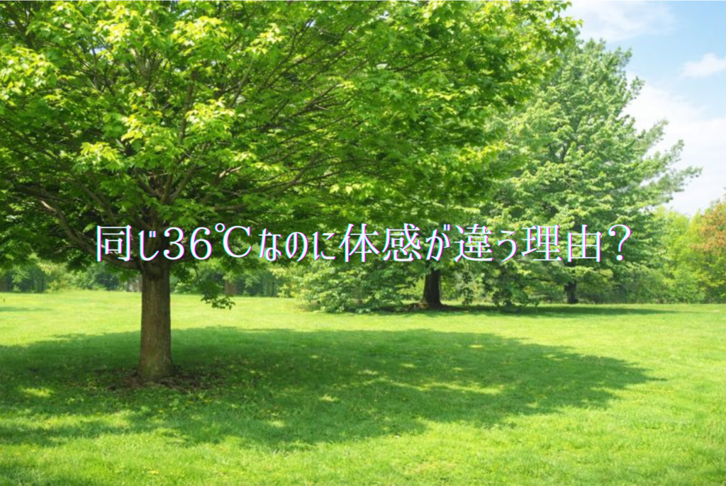 気温が36℃の日、日向ではとても暑く感じるのに、日陰に入ると少し楽になりますよね。